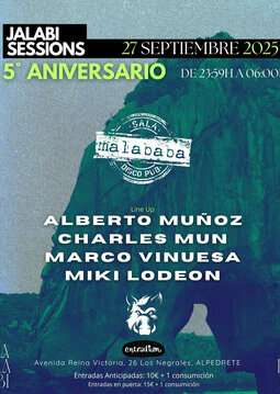 Y esta vez para celebrar nuestro 5º Aniversario con un cartel en el que contaremos toda la noche con nuestros residentes y fundadores del colectivo. Celebramos que hace 5 años decidimos unirnos y formar JALABI RECORDS con todas sus vertientes de producción, eventos y estudio de musica.