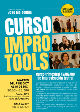 En este curso avanzado entrenaremos muchas herramientas para disponer a la mente y al cuerpo para el recorrido de un formato largo de impro, teniendo en cuenta tanto la presencia y el instante, aportados por el método SLOW IMPRO® creada por Jose Malaguilla, como la conciencia de la historia y el fluir del sentido de las escenas, con una mirada en el VIAJE DEL HÉROE de Joseph Cambell.